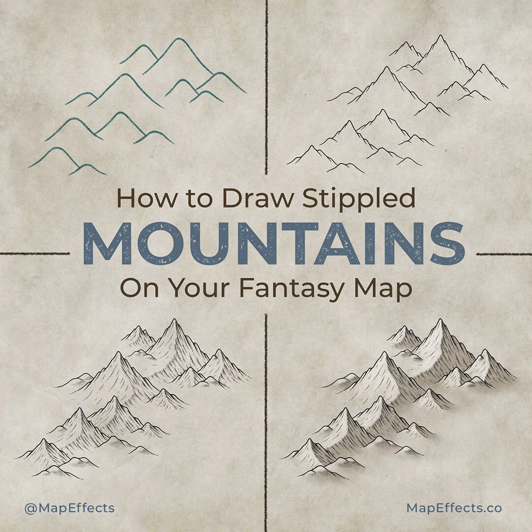 There are many ways you lot can draw mountains on a fantasy map, only this method will walk you through how to utilise a traditional stippling technique which brings a bit of a Victorian aesthetic to your modern fantasy cartography.